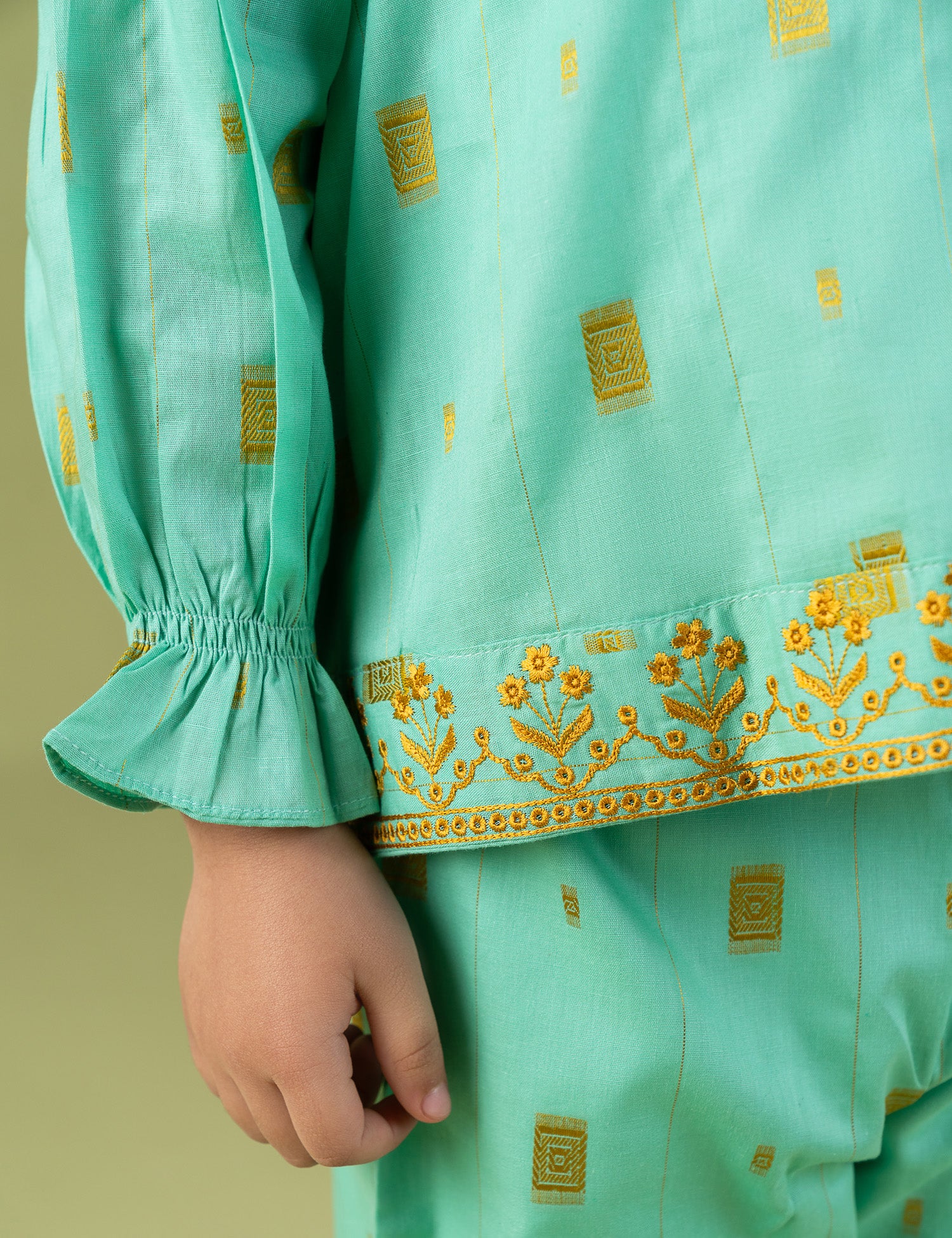 This elegant 2-piece floral embroidered suit for girls is designed to blend comfort with timeless style. Crafted from soft, breathable fabric, the set includes a beautifully embroidered top paired with matching bottoms for a coordinated look. The delicate floral embroidery adds a graceful and charming touch, making it perfect for festive occasions, family gatherings, or special outings. Designed for easy movement and all-day wear, this suit keeps your little one comfortable while looking effortlessly stylish.