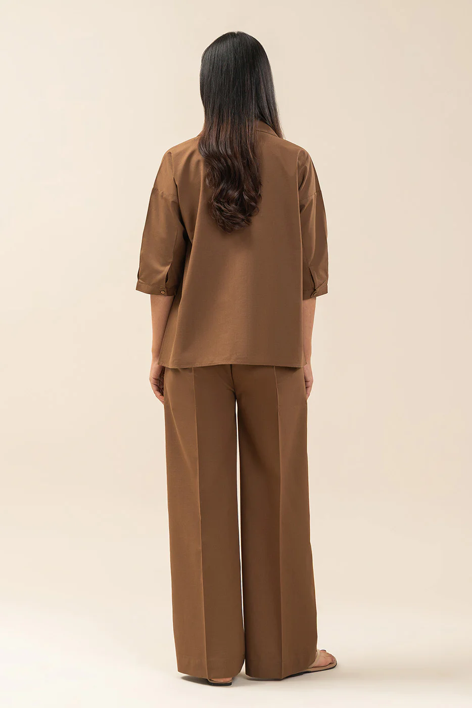 - Description: Basic Co Ord Set With Shirt Collar Detail , Three Quater Sleeves Paired With Loose Fit Pants.