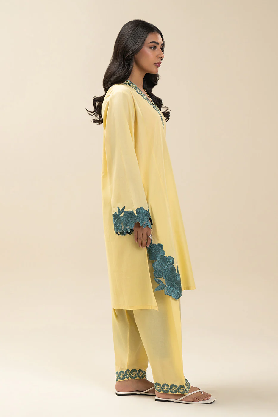 2Pc Floral Embroidered Shirt Paired With Embroidered Shalwar.