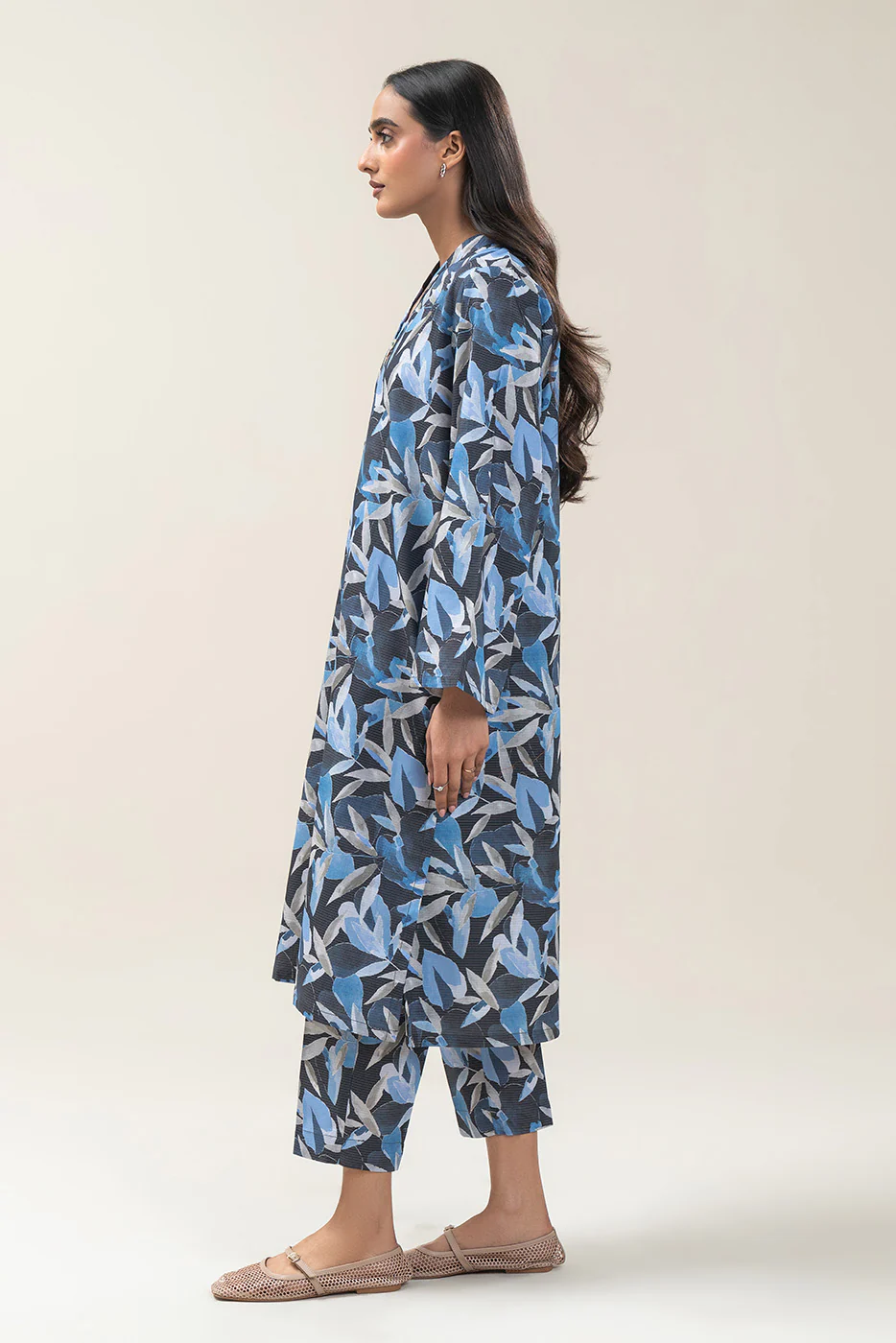 - Description: 2Pc Printed Shirt With Button Detail On Neckline Paired With Printed Straight Trouser.