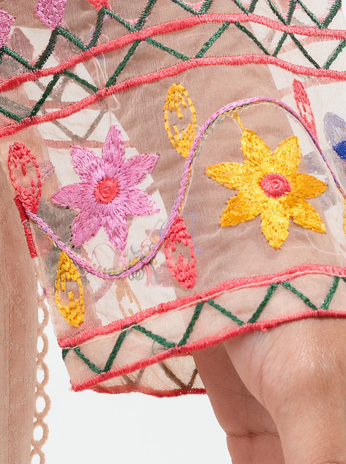 - Description: Silk Shirt With Screen Printing And Contrast Embroidery Detail On Front And Sleeves.